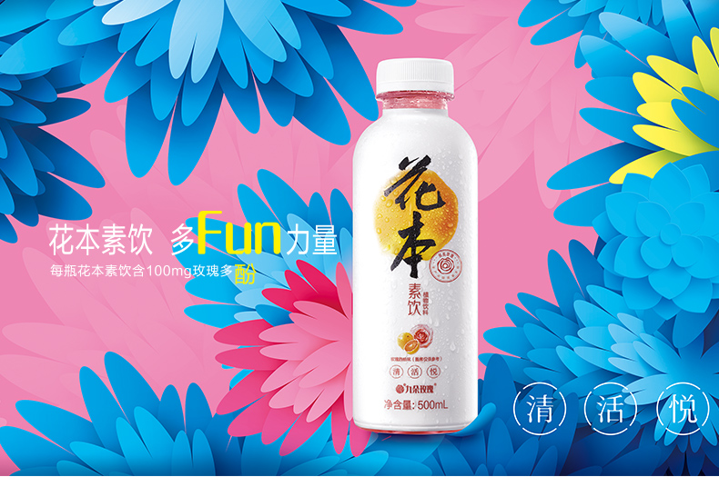 每瓶花本素饮大约含有6朵玫瑰精华,拥有玫瑰加果味的特别口感。