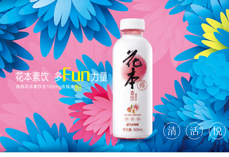 一瓶花本素饮含有100克玫瑰多酚,口味清淡,符合现代健康消费趋势。