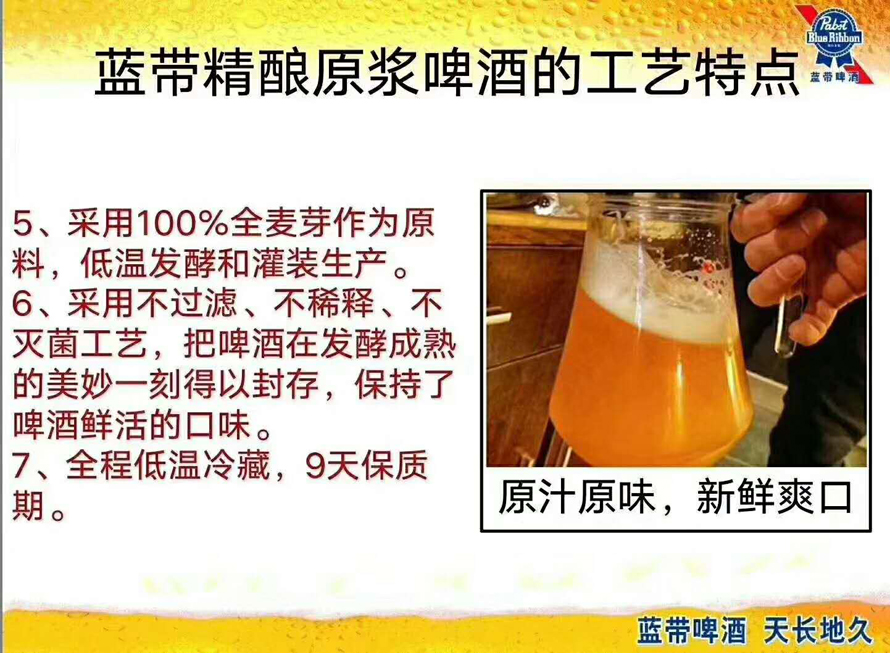 会议之后,公司领导、经销商和销售团队对蓝带精酿原浆产品做了现场品鉴。在经过细致的品鉴后,大家普遍反映蓝带精酿原浆泡沫洁白细腻、丰富持久;色泽美丽,酒体呈浅金黄色,接近于轻雾状的浑浊,富含活性酵母;香气浓郁,有独特的酒花香、浓郁的麦芽香等协调香气;口感鲜活,口味纯正,清爽、柔滑、协调、杀口,是真正的好啤酒,这款蓝带精酿原浆必将提升基地市场的消费档次,扩大蓝带的品牌影响,成为蓝贝酒业集团在基地市场的一个崭新的发展契机。