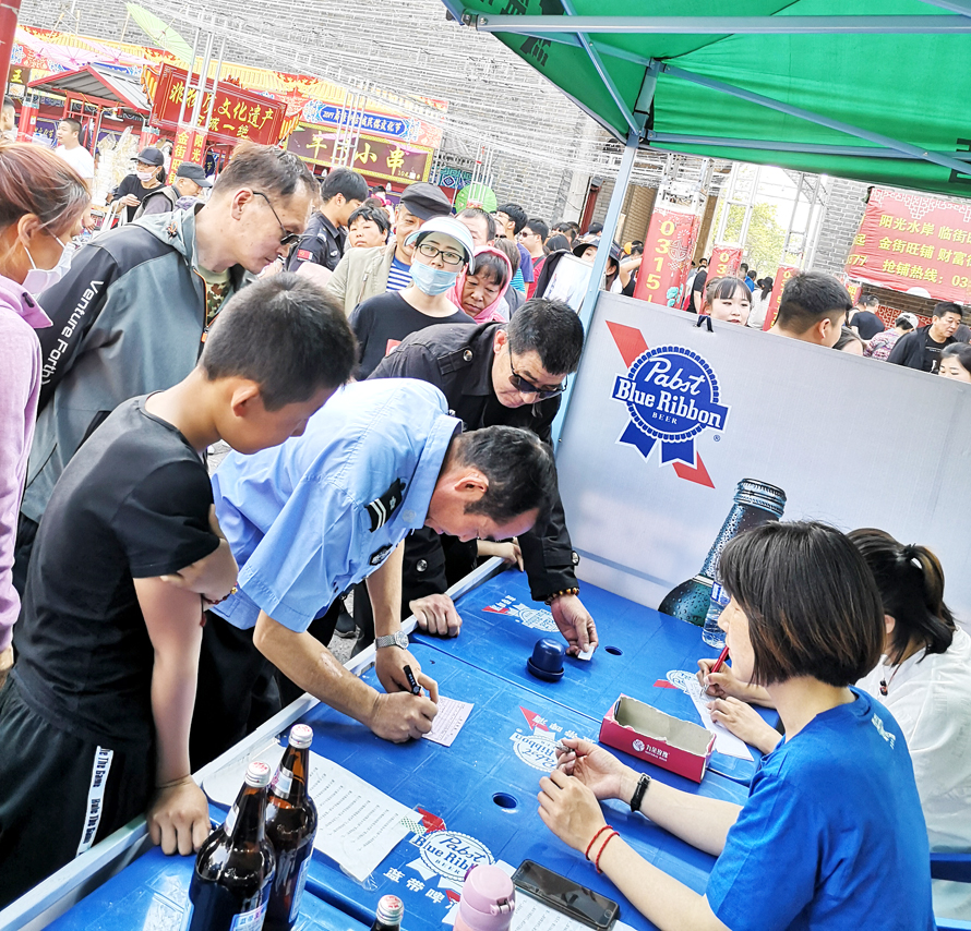 自“滦州情”啤酒推向基地市场后,在滦州大地迅速走红,短短两个月就已经出库两万余件,创下了近年新品上市的最好战绩。为了借力古城旅游的火爆之势,继续扩大“滦州情”啤酒的宣传声势,蓝贝酒业集团与滦州古镇商贸有限公司合作,利用“五一”小长假之机在滦州古城组织了以“盛世滦州情,幸运鲤哆哆”为名的“滦州情”啤酒大型宣传促销活动。集团品牌营销部与销售公司相互配合,充分发挥基地市场业务员和销售特战队作用,一连四天的紧张组织和活动推广,在滦州古城引起强烈的市场反响。